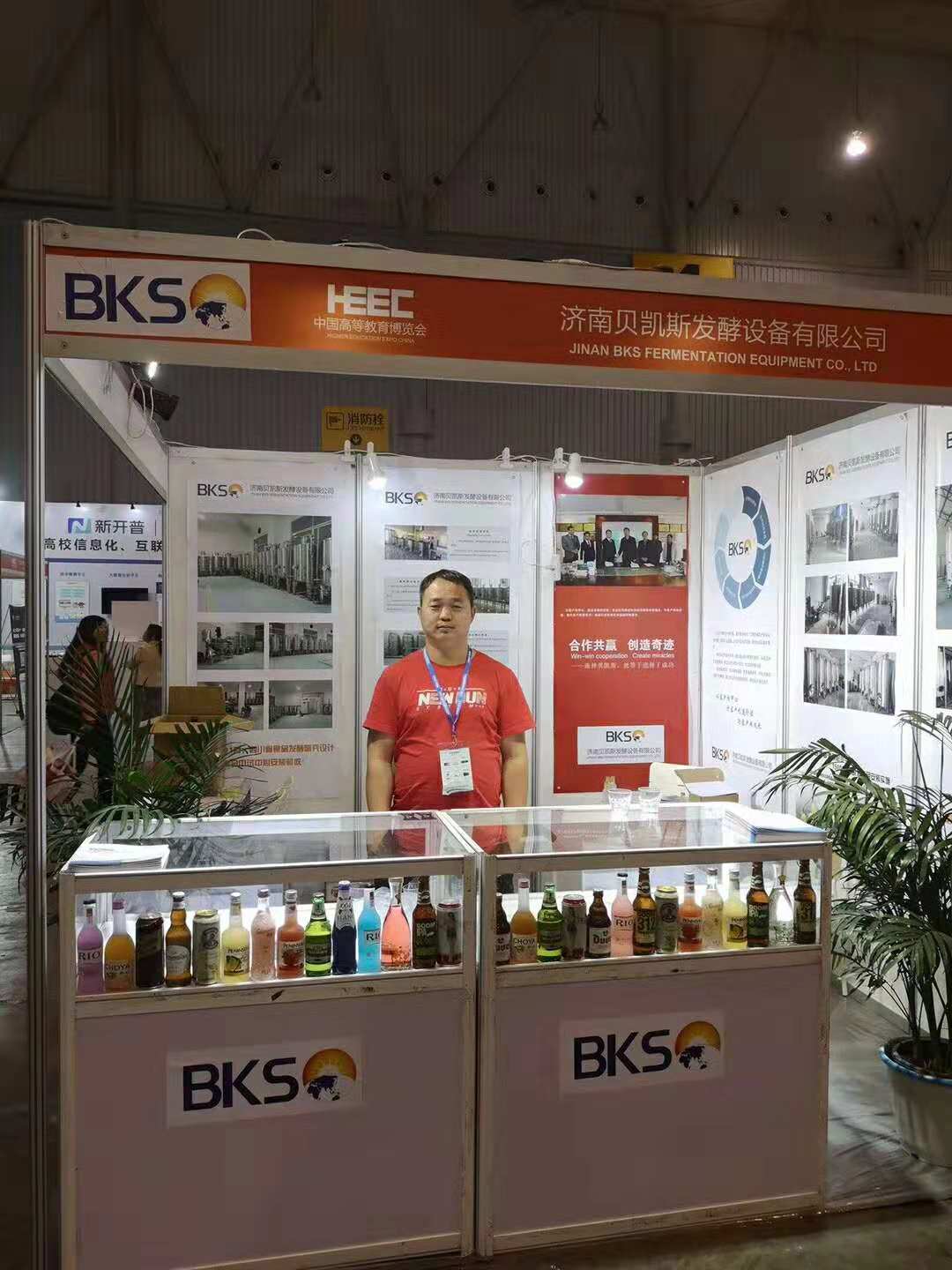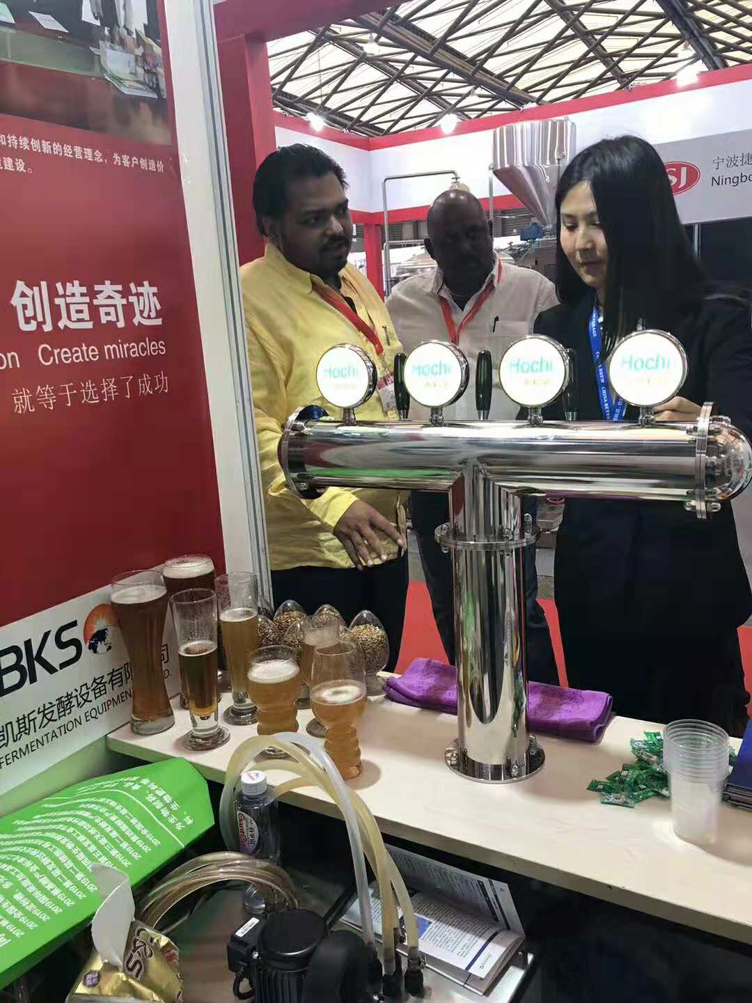 上海展会:主要展示了公司自主商标精酿啤酒加盟品牌“啤校长”、果酒设备、蒸馏设备等。“啤校长”的风味得到了许多客户的认可,尤其是一款美式小麦,口感香气丰富。整个展会期间,啤酒设备众多,所以济南贝凯斯的果酒设备较为引人关注,同时有成功的案例展示,许多客户专门前来咨询。蒸馏设备模型小而精美,比较吸引眼球,许多客户好奇前来询问。
